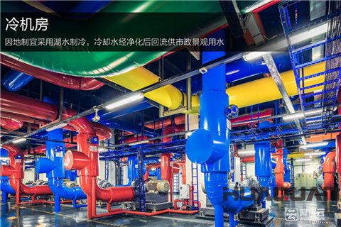 數據中心外部有兩臺湖水處理器,通過密封管道從湖中取水,技術講解人員表示:“取水口完全符合環保標準,選擇的是中間層,既不會太深避免泥沙等問題,也不會太淺有較多浮游生物。取水層基本無雜質,水溫基本在13度左右,雖然不同天氣略有變化,但基本浮動也就在1度左右。”